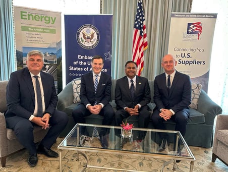 From left: Petr Brzezina, Elias Gedeon, Westinghouse SVP, U.S. Ambassador to Slovakia Gautam Rana, Pavol Štuller, Chairman of the Board and CEO of JAVYS, signing MOU.